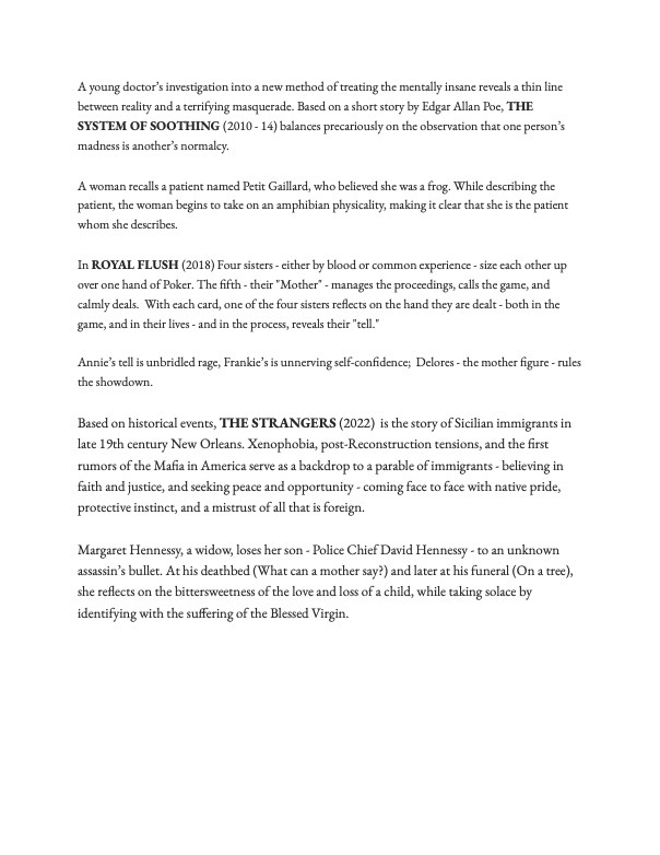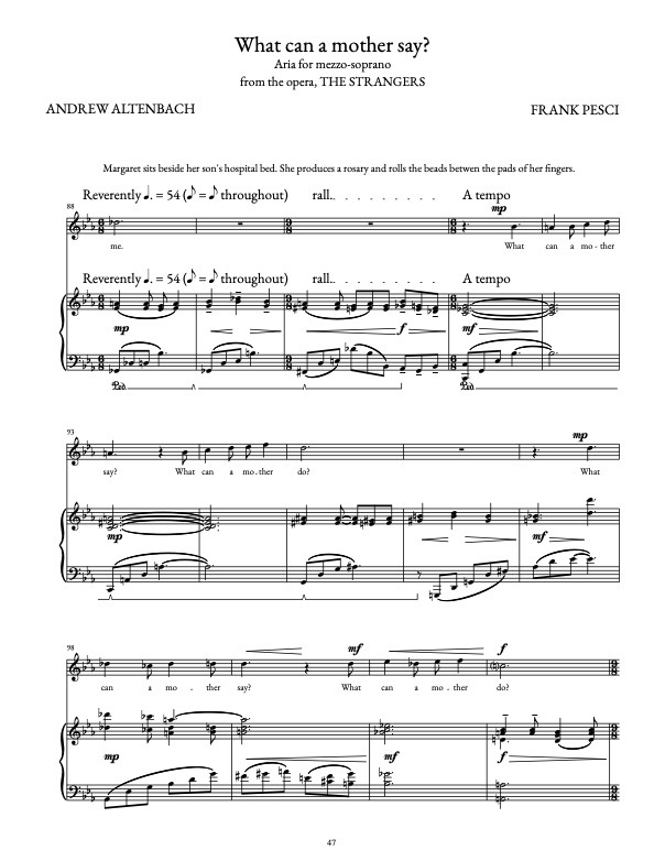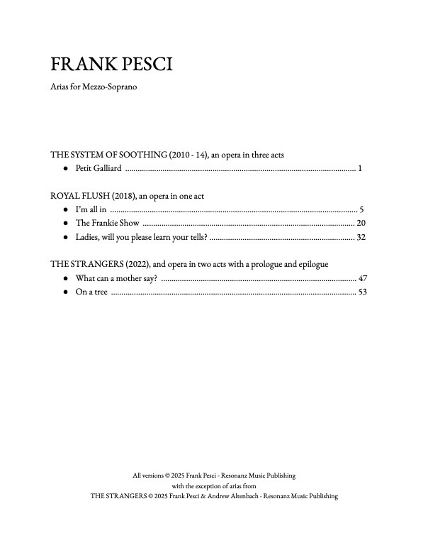 Arias for Mezzo-Soprano from the operas THE SYSTEM OF SOOTHING, ROYAL FLUSH, and THE STRANGERS. Piano/vocal score.